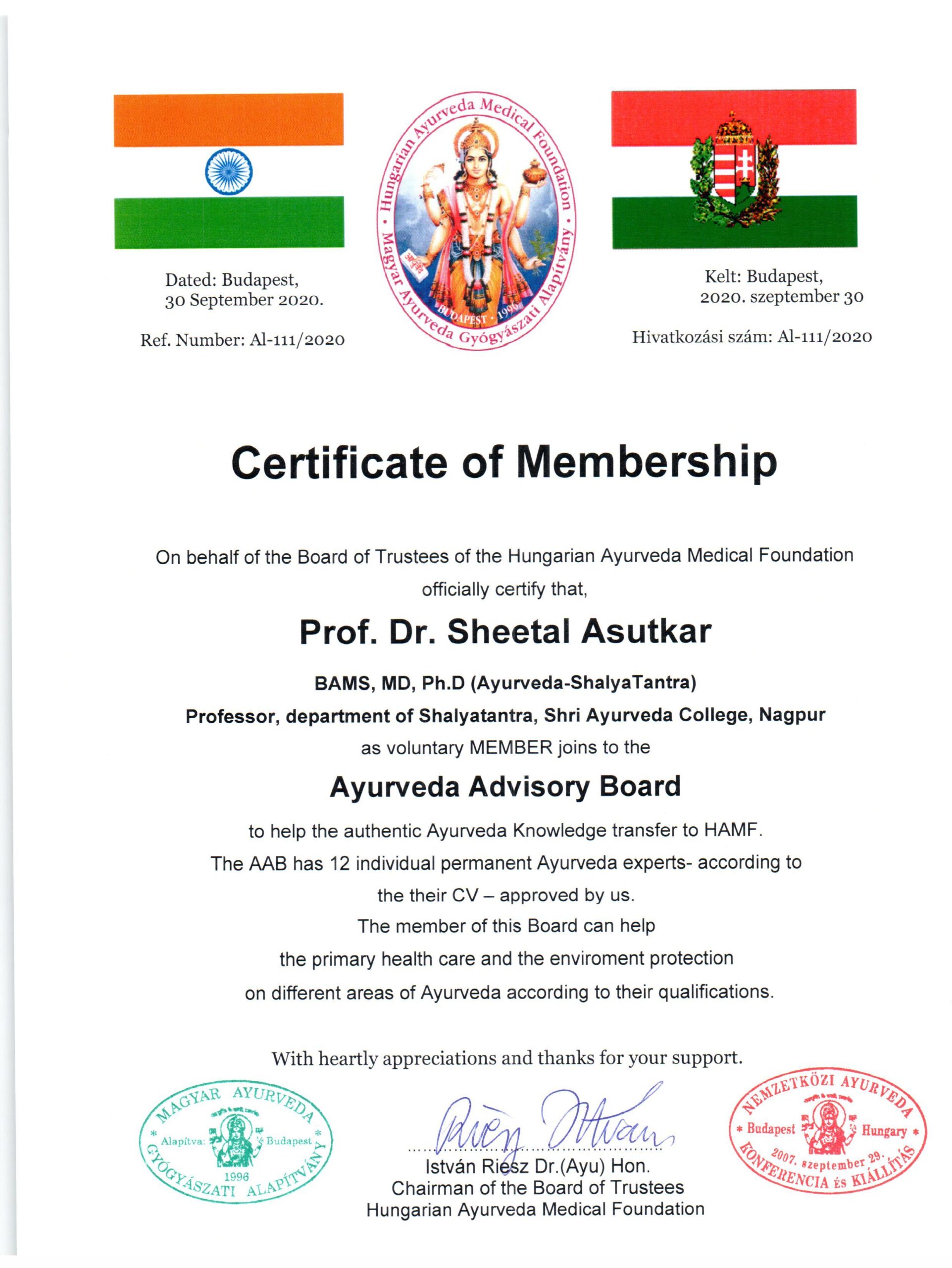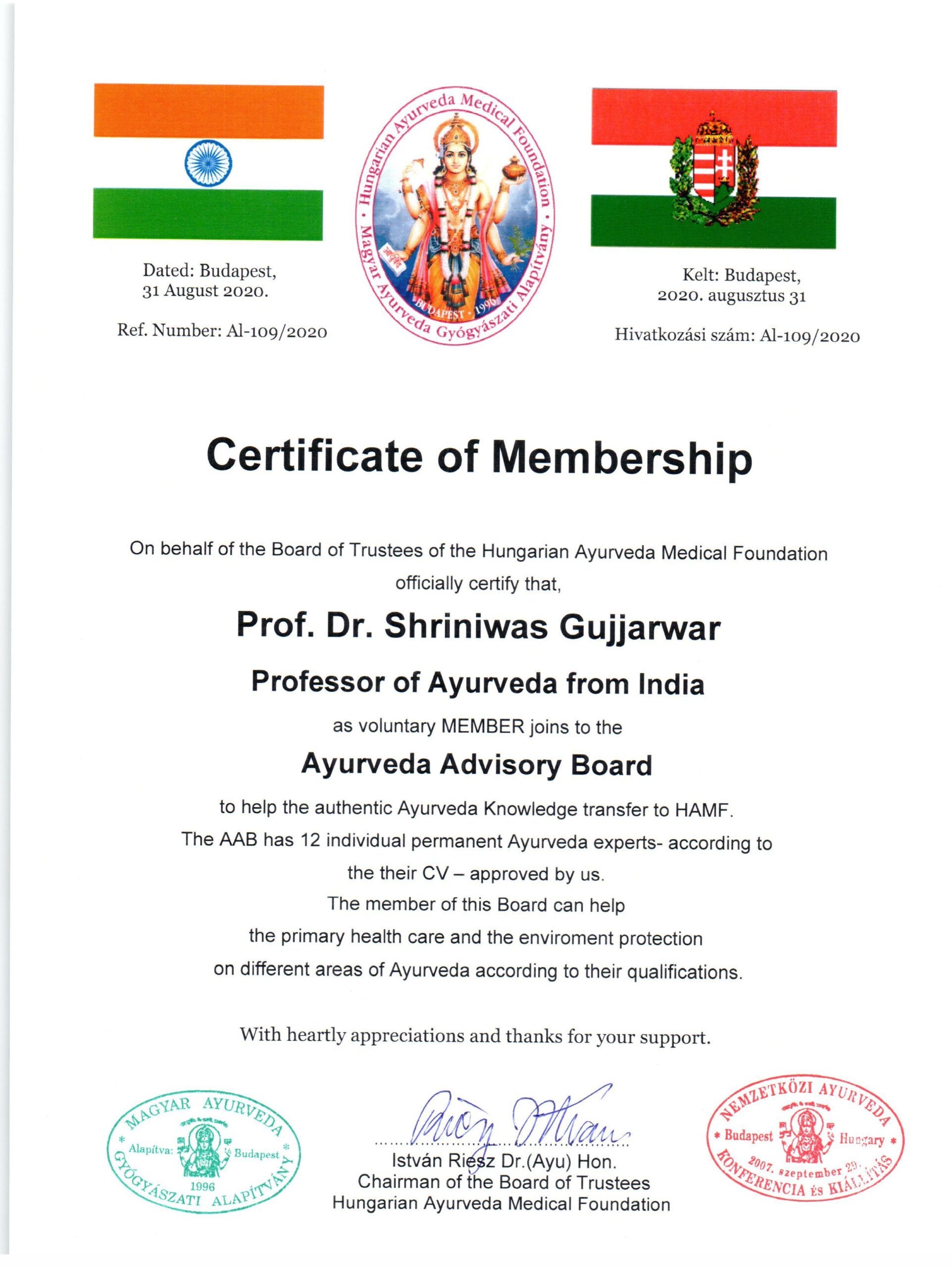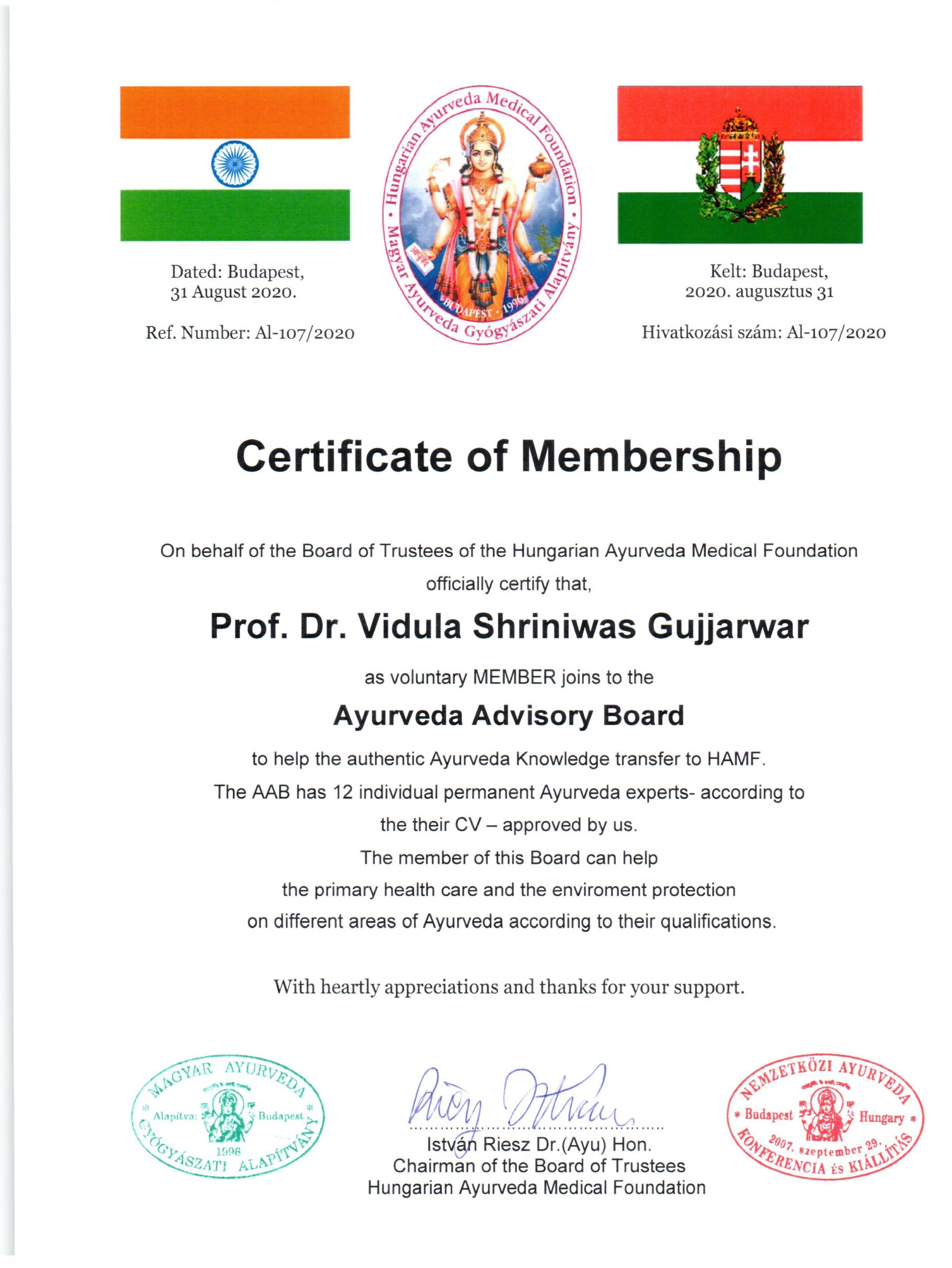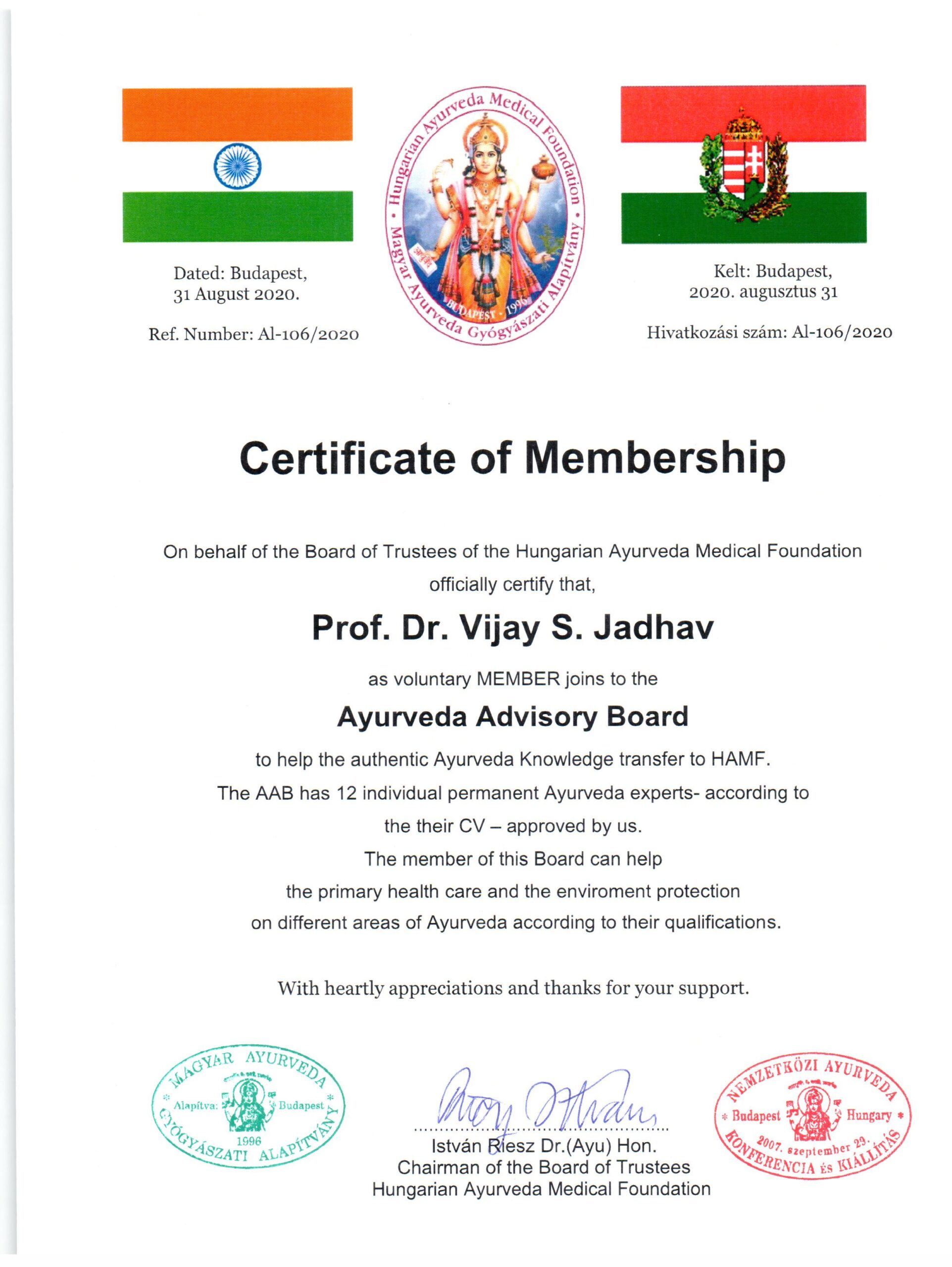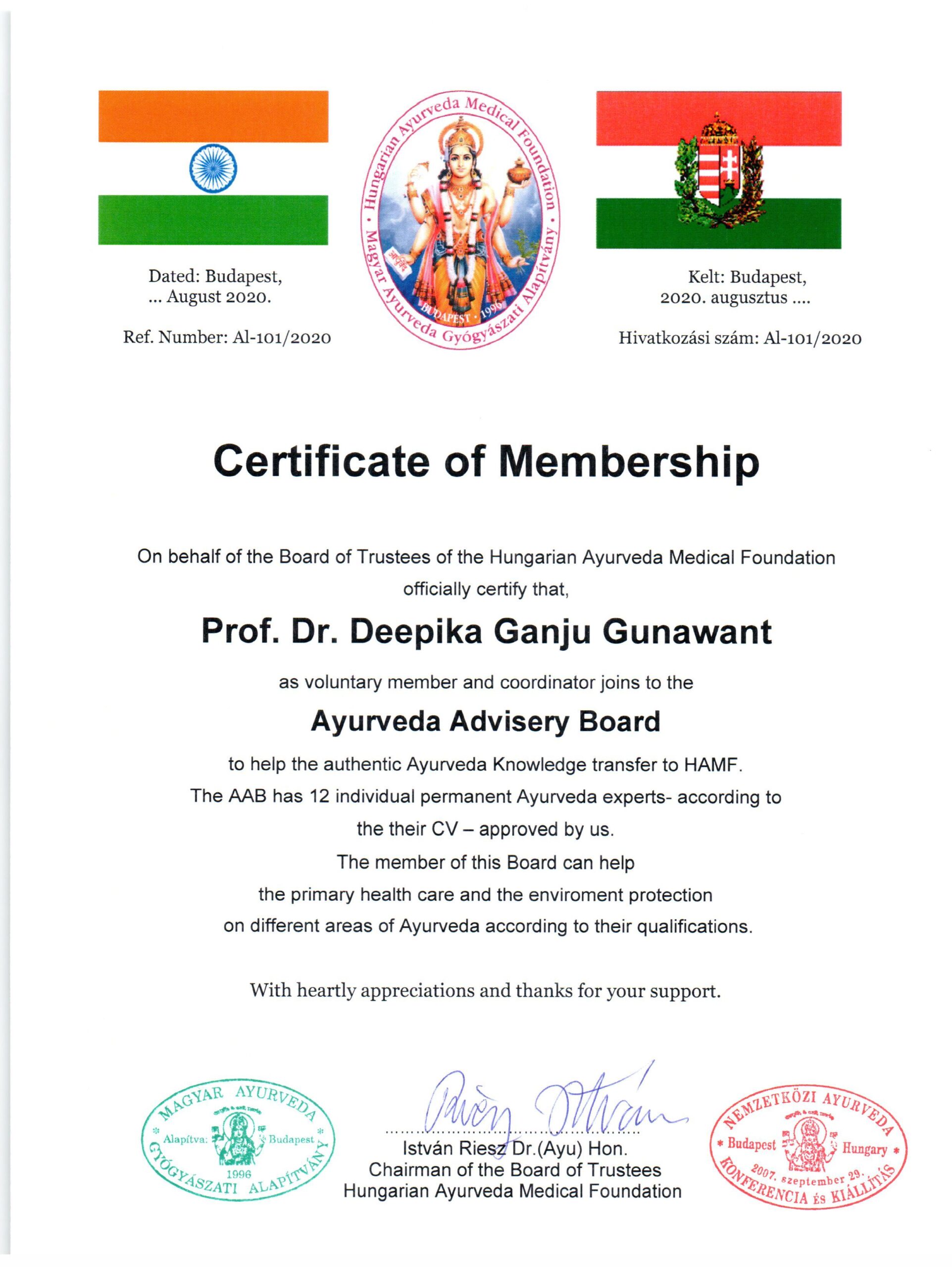 Ayurveda Tanácsadó Testülete